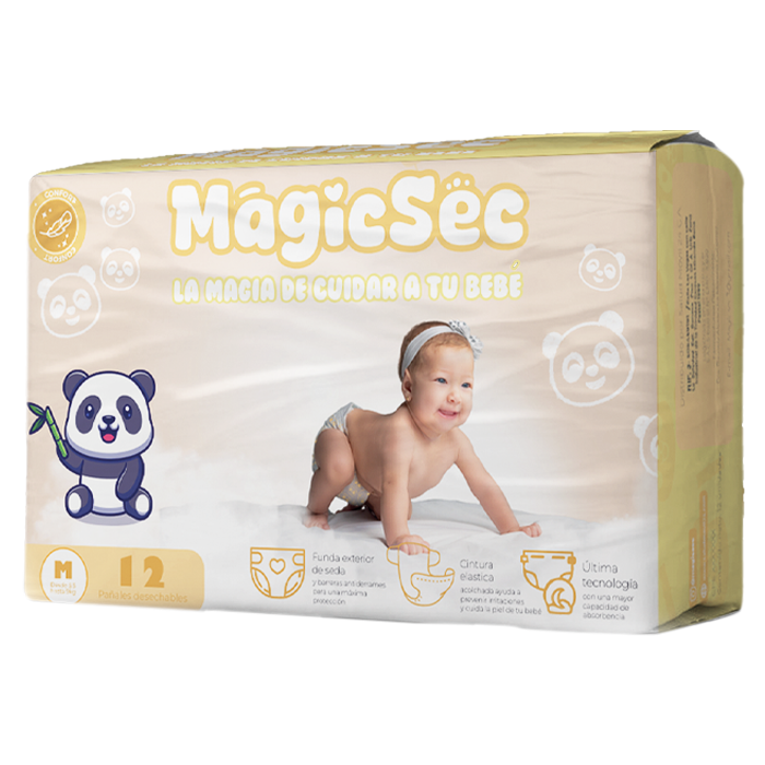 PAÑALES DESECHABLES PARA BEBE MAGIC SEC TALLA M 12 UNID.