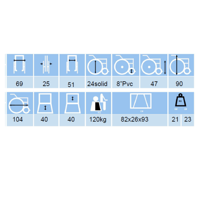 - Tamaño de la rueda delantera: 8'' (20 cm)